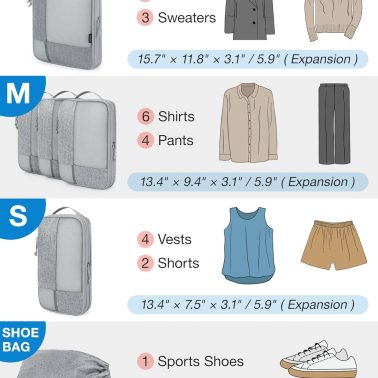 • BAGSMART Compression Packing Cubes for Travel, 6 Set Travel Packing Cubes for Carry on Suitcases, Compression Travel Cubes & Suitcase Organizer for Packing with Shoe Bag Grey