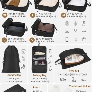 • Sale! Compression Packing Cubes 10 Sets, Packing Organizers, Extensible Suitcase Organiser Bags, Travel Organizer Cubes for Travel Essentials Black