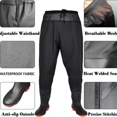 • Fishing Waders with Boots, Nylon/PVC Waist Wader Pants Fishing Waders for Men Women, Waterproof Bootfoot Waders